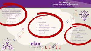 Dit lerend netwerk is voor iedereen met passie voor begaafdheid. Het netwerk heeft als doel kennis & vaardigheden opdoen en ervaringen uitwisselen, zodat we samen begaafdheid sterker op de kaart zetten binnen Elan Onderwijsgroep.